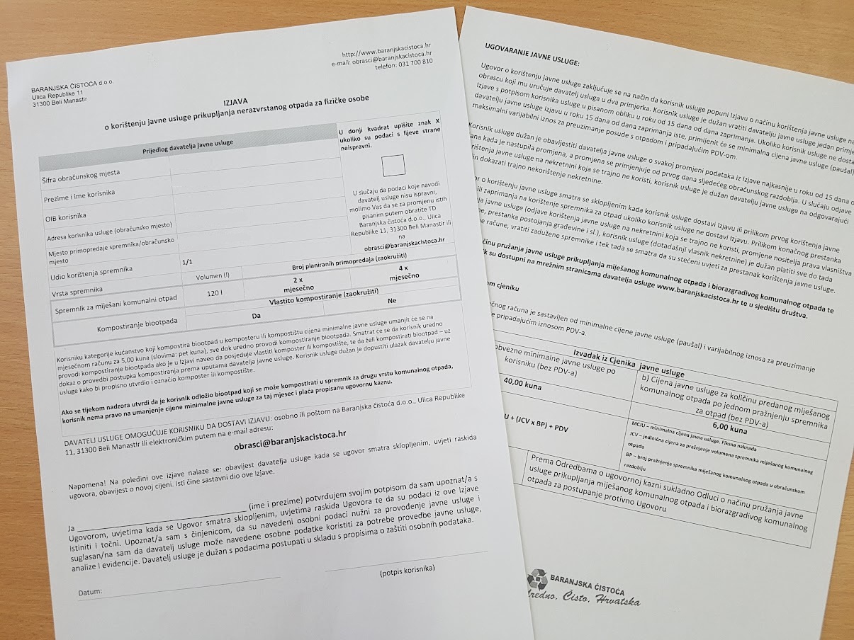 Izjava o korištenju javne usluge prikupljanja nerazvrstanog otpada